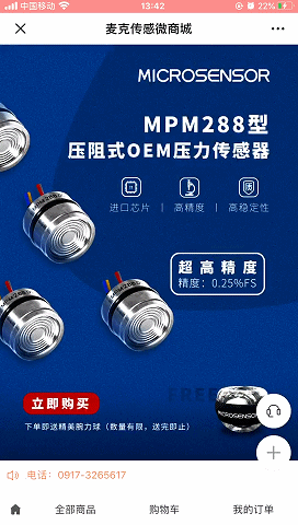 此次商城上线,我们首发上架了MPM288型压力传感器。